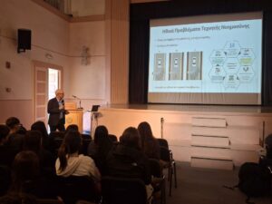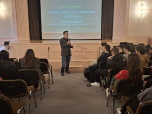 - Ο κ. Αδάμ Βρεχόπουλος, Καθηγητής του Τμήματος Διοικητικής Επιστήμης & Τεχνολογίας του Οικονομικού Πανεπιστημίου Αθηνών, μίλησε στους/στις μαθητές/τριές μας σχετικά με τις εξαιρετικές εξειδικεύσεις που προσφέρει το Τμήμα του, οι οποίες περιλαμβάνουν τα Πληροφοριακά Συστήματα και το Ηλεκτρονικό Επιχειρείν, την Εφοδιαστική Αλυσίδα, την Επιχειρησιακή Έρευνα, τη Διοίκηση Ανθρώπινου Δυναμικού και την Ανάλυση Δεδομένων. Επίσης, αναφέρθηκε σε καινοτόμες πρωτοβουλίες στις οποίες συμμετέχουν οι φοιτητές τού Τμήματος και στις εξαιρετικές ευκαιρίες που τους προσφέρονται για πρακτική άσκηση σε μεγάλες εταιρείες.