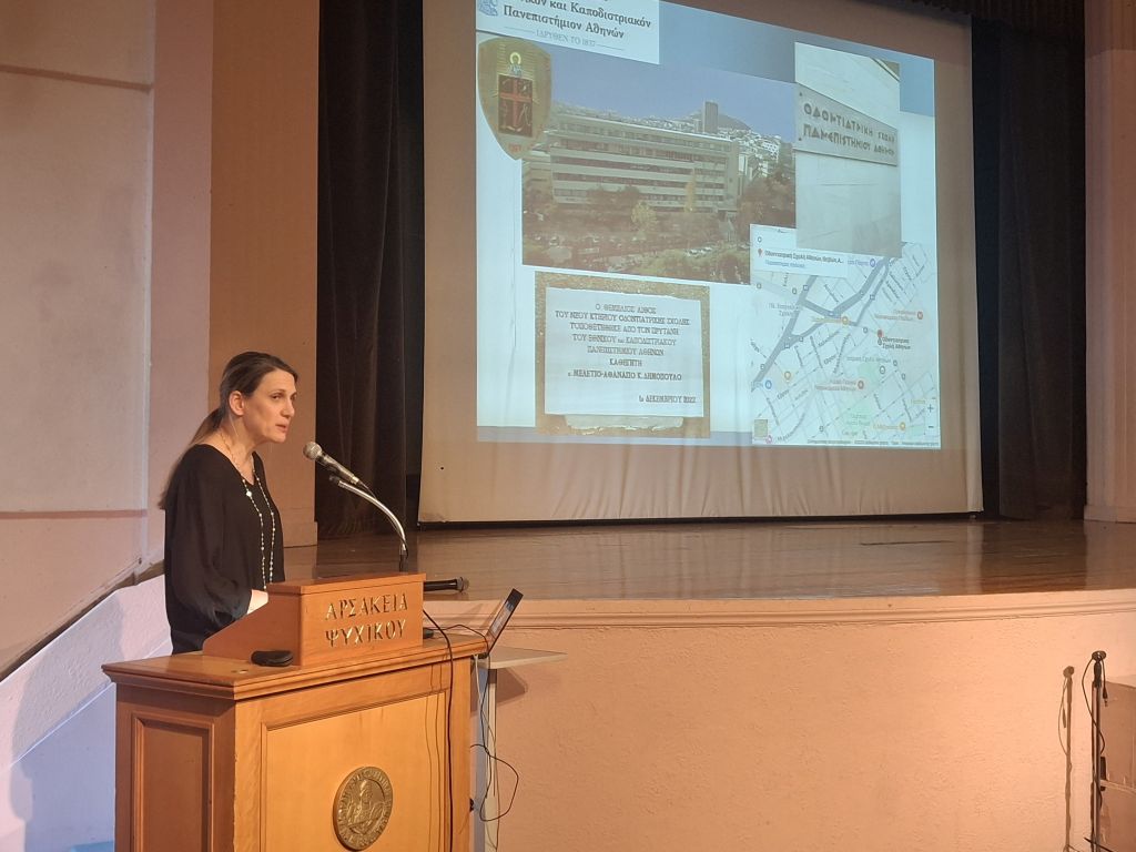 - Η κ. Ιόλη Αρτοπούλου, Οδοντίατρος, Γναθοπροσωπικός Προσθετολόγος, Αναπληρώτρια Καθηγήτρια της Οδοντιατρικής Σχολής του Εθνικού & Καποδιστριακού Πανεπιστημίου Αθηνών παρουσίασε τα θεωρητικά και εργαστηριακά μαθήματα τα οποία περιλαμβάνει το πρόγραμμα σπουδών τής Σχολής της και ανέλυσε λεπτομερώς τις ειδικεύσεις και τις απαιτήσεις του οδοντιατρικού επαγγέλματος. Στο τέλος της παρουσίασής της, η κ. Αρτοπούλου μας μίλησε σχετικά με τις ευκαιρίες εκπαιδευτικής και επαγγελματικής εξέλιξης τις οποίεςς προσφέρει η οδοντιατρική επιστήμη, καθώς και τις σύγχρονες πρωτοποριακές τεχνικές οι οποίες χρησιμοποιούνται στο οδοντιατρικό επάγγελμα (βιοτεχνολογία, βλαστοκύτταρα, βιοϋλικά και ψηφιοποίηση).