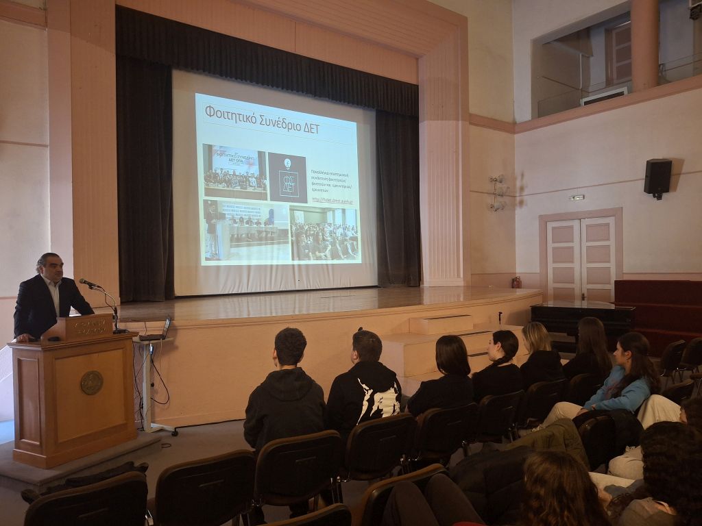 - Ο κ. Αδάμ Βρεχόπουλος, Καθηγητής του Τμήματος Διοικητικής Επιστήμης & Τεχνολογίας του Οικονομικού Πανεπιστημίου Αθηνών, μίλησε στους/στις μαθητές/τριές μας σχετικά με τις εξαιρετικές εξειδικεύσεις που προσφέρει το Τμήμα του, οι οποίες περιλαμβάνουν τα Πληροφοριακά Συστήματα και το Ηλεκτρονικό Επιχειρείν, την Εφοδιαστική Αλυσίδα, την Επιχειρησιακή Έρευνα, τη Διοίκηση Ανθρώπινου Δυναμικού και την Ανάλυση Δεδομένων. Επίσης, αναφέρθηκε σε καινοτόμες πρωτοβουλίες στις οποίες συμμετέχουν οι φοιτητές τού Τμήματος και στις εξαιρετικές ευκαιρίες που τους προσφέρονται για πρακτική άσκηση σε μεγάλες εταιρείες.